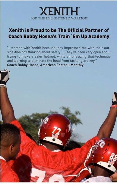 While attending a Concussion Conference in Marina Del Rey back in 2009 or '10, just by chance I met the founder and creator of Xenith Helmets in the lobby of the hotel where the conference was being held. Long story short, he ended up sponsoring my Tackle Training Camps up until he sold the company and the their vision of safety was no longer the same as his.